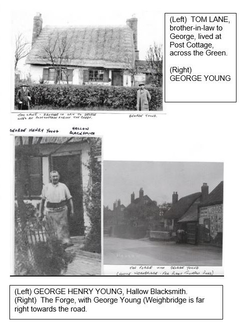 GEORGE YOUNG, the Blacksmith lived and worked in "The Forge" by the Crown. He would let the children watch him shoe horses as long as they were very quiet. People remember the heat and the noise when the blacksmiths were working hard.